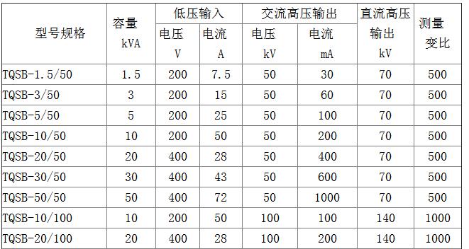 注:1、我廠TQSB系列試驗(yàn)變壓器單臺可做到交流300kV,容量300kVA;